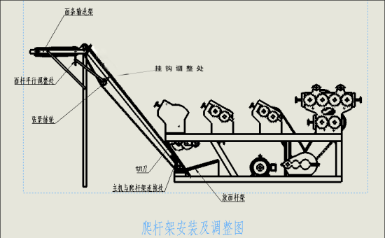 (7)上架后如出现两边面条长短不一致,哪边长往哪边拉动链条,拉动距离等于面条长出部分的二分之一